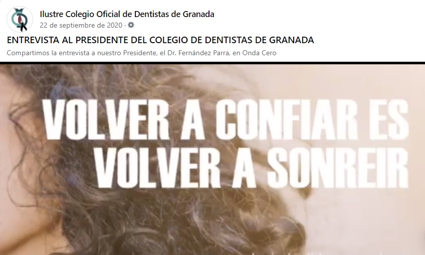 ENTREVISTA AL PRESIDENTE DEL COLEGIO DE DENTISTAS DE GRANADA por admin | Feb 7, 2021 | Noticias | 0 Comentarios Compartimos la entrevista al Presidente del Colegio de Dentistas de Granada, el Dr. Fernández Parra, en Onda Cero https://www.facebook.com/668277416625138/videos/690243058365140 Enviar comentario Cancelar la respuestaTu dirección de correo electrónico no será publicada. Los campos obligatorios están marcados con *Comentario * Nombre * Correo electrónico * Web Guarda mi nombre, correo electrónico y web en este navegador para la próxima vez que comente.
